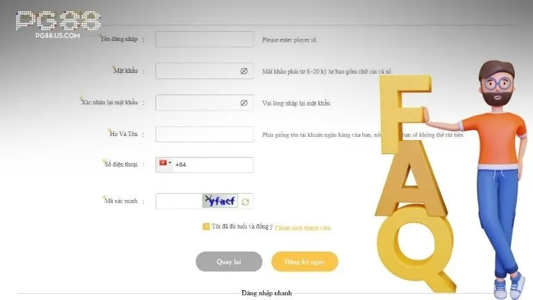 FAQ – Câu hỏi thường gặp về quy trình đăng ký account PG88